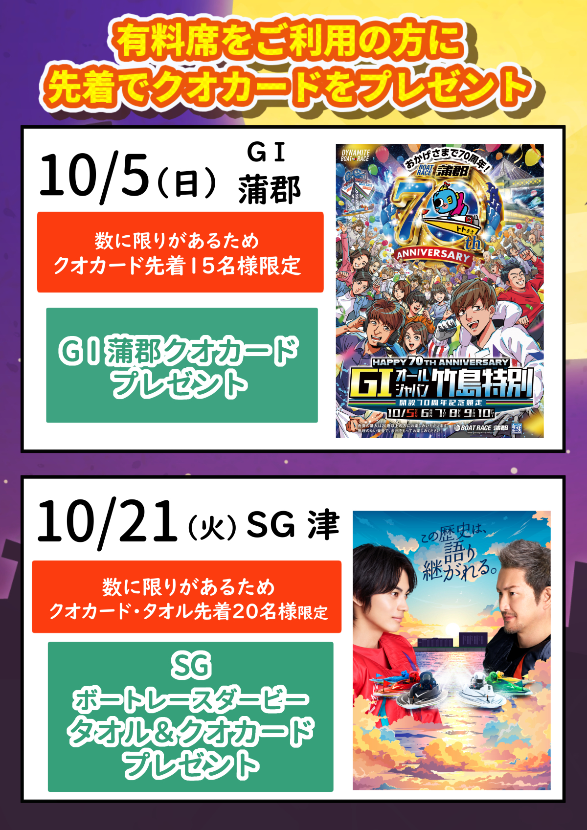 有料席をご利用のお客様に先着で