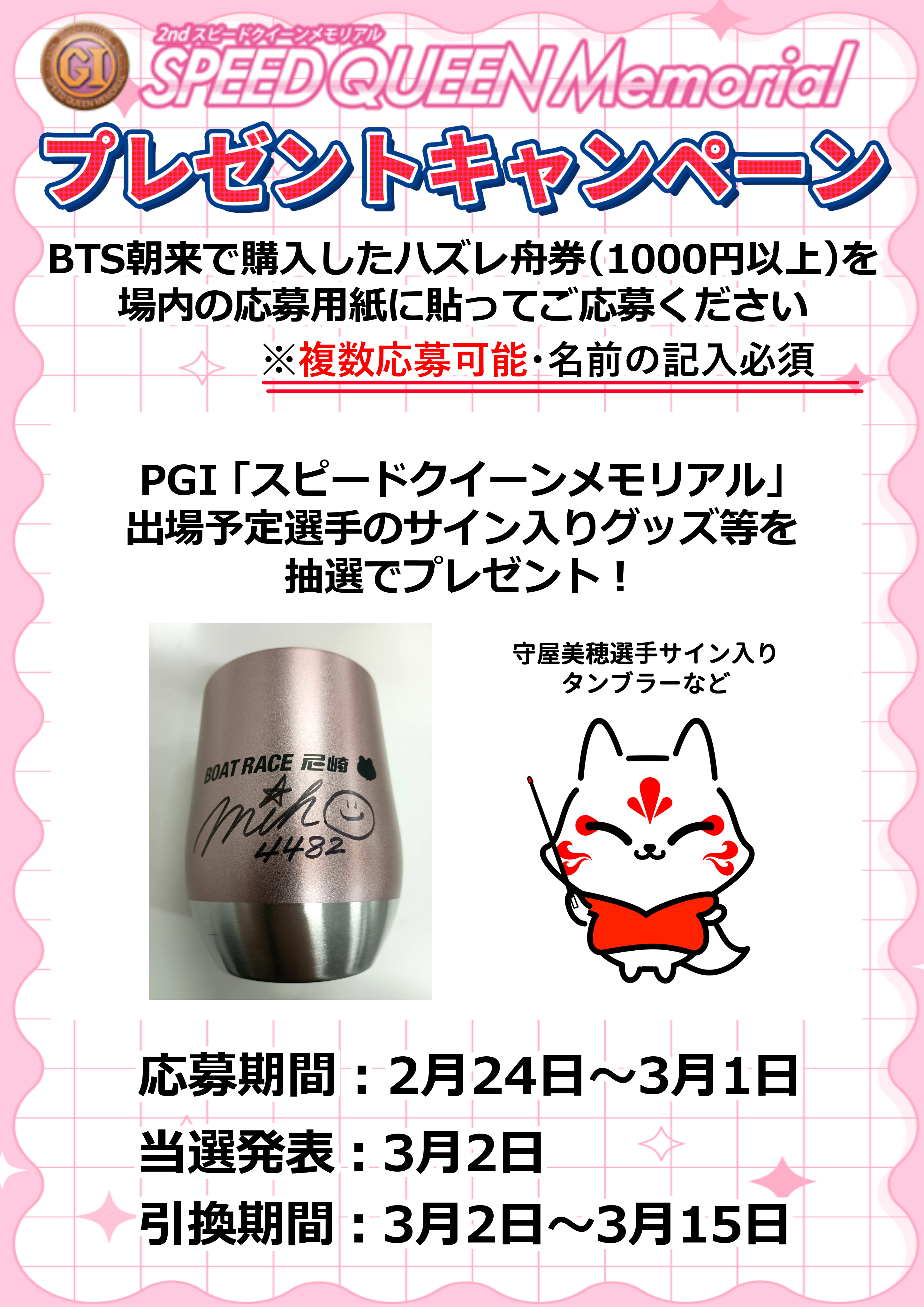 当選発表:3月2日(月)