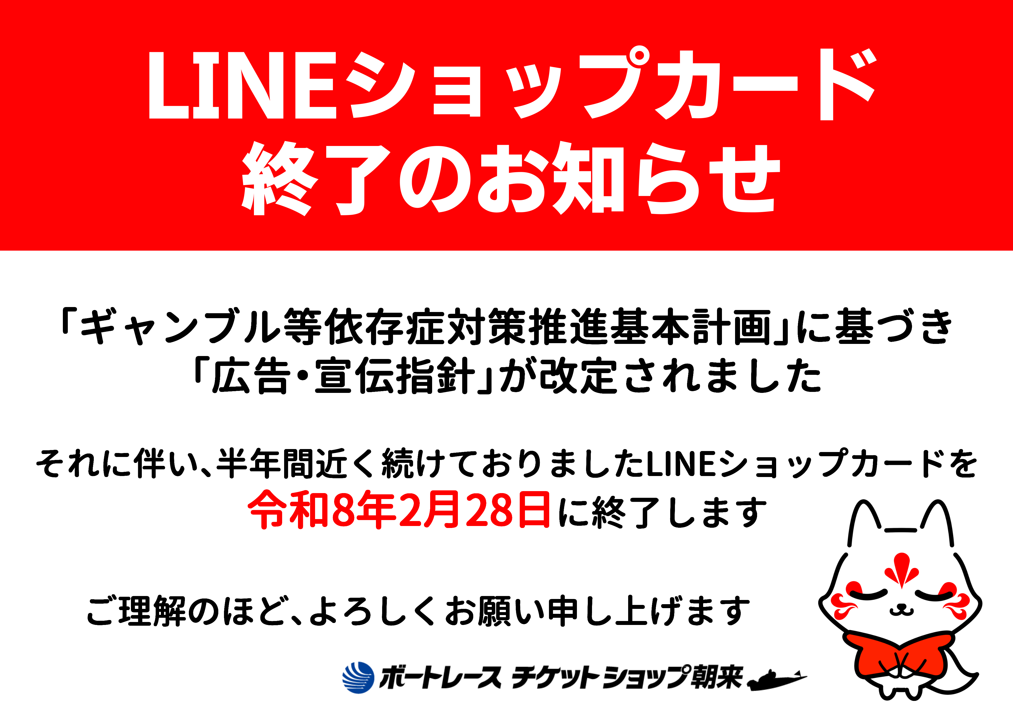 それに伴い、半年間近く続けておりましたLINEショップカードを 令和8年2月28日に終了します