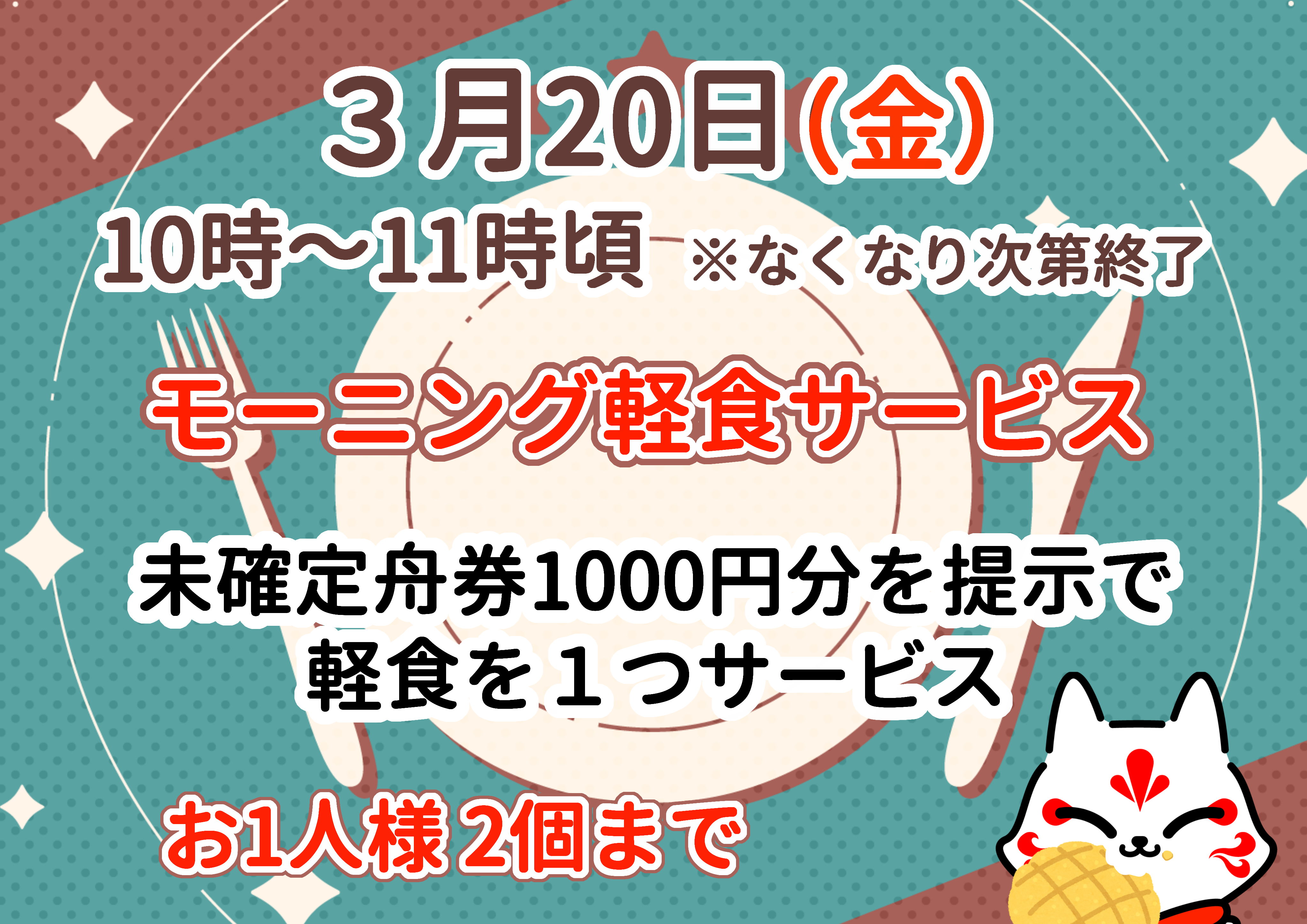 未確定舟券1000円分提示で軽食をサービス