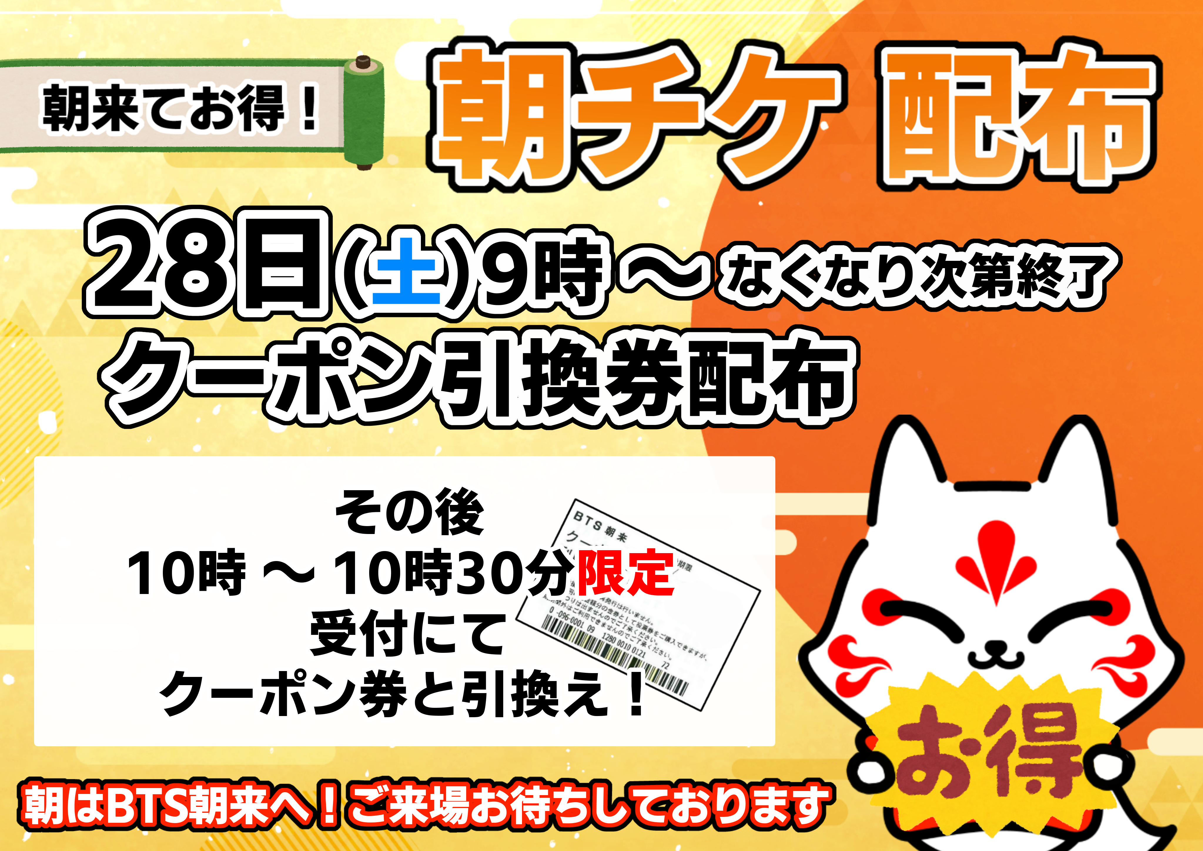 🌄朝チケクーポン引換券配布🌄
